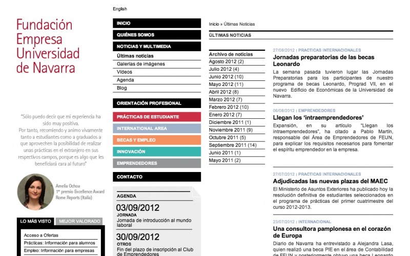Magazine page layout where different sections are marked with different colours. This site has a well-thought, clear navigation which is very important for a site with many materials and mostly textual content. Its design is fresh and modern.